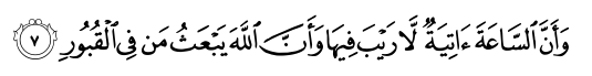 وَأَنَّ السَّاعَةَ آتِیَةٌ لَّا رَیْبَ فِیهَا وَأَنَّ اللَّهَ یَبْعَثُ مَن فِی الْقُبُورِ